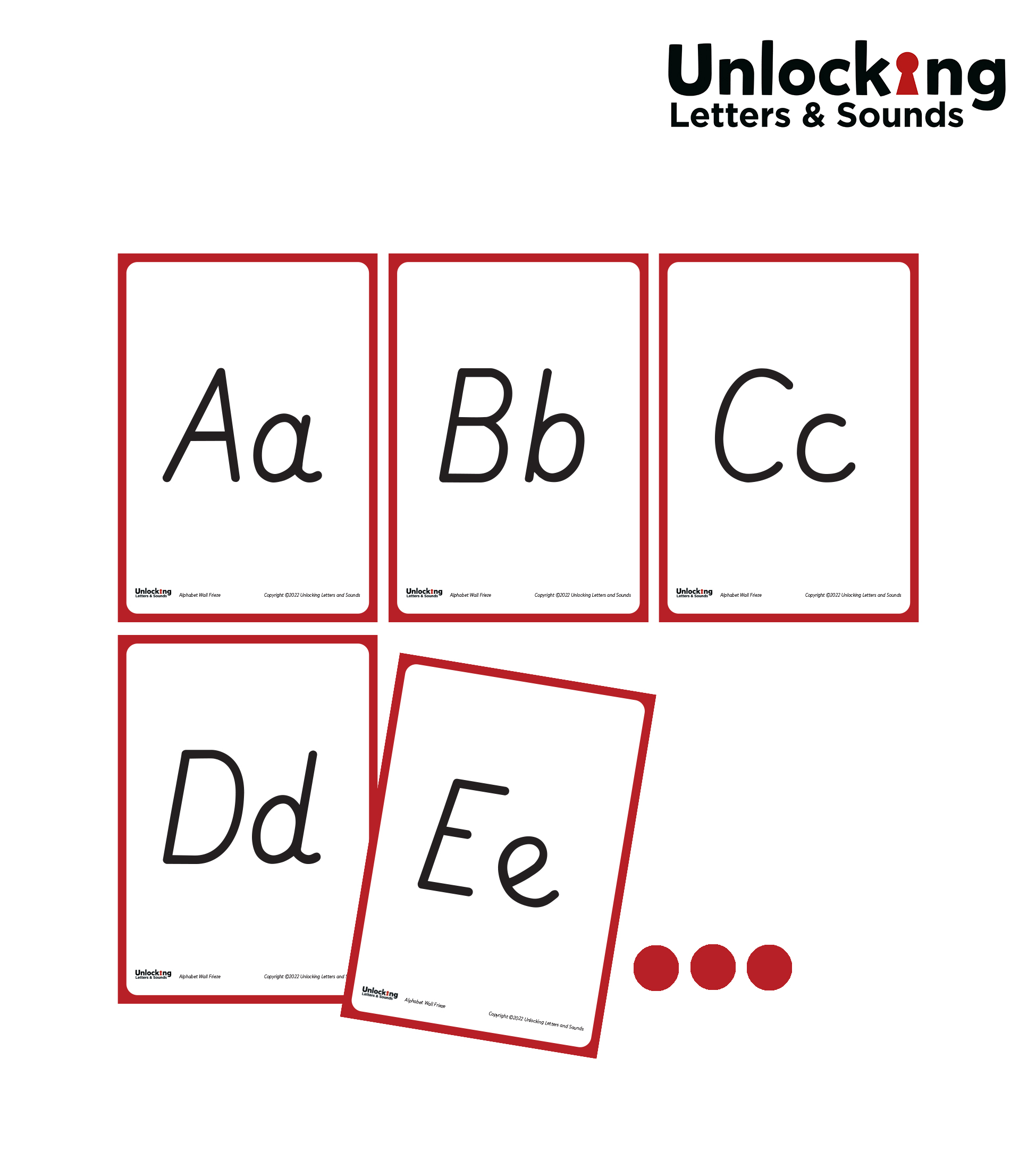 The letters can be displayed side by side on the wall to support children in learning the order and sequence of the letters of the alphabet (while your Phase 2 and Phase 3 wall friezes are covering GPCs in the order they’ve been taught).