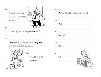 All his friends and family call him Pig. Even the teachers. Pig is 12 and is small for his age. He has sticky-out ears and bright red hair which is also sticky up. He attends Coalpits Road High School (or ‘The Pits’ as it is known locally) and lives with his mum. Pig is small for his age, but says his mum is huge for hers. She is a single mum, but Pig says she looks more like a double mum or even a treble mum.