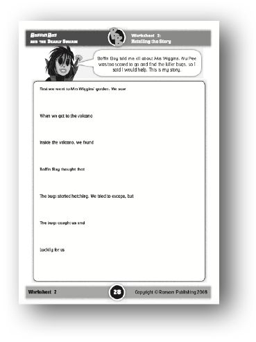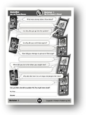 Support: Ensure that the students understand that, in answering Wu Pee’s questions, Polly and Boffin Boy are explaining the events of the story to Wu Pee. If appropriate, review the story before starting this worksheet. The answers to Wu Pee’s questions can all be found in the text. For the final part of the worksheet, the students are asked to devise a further question and to provide an answer. This could be slightly more challenging. Alternatively, the students could write the question and then give it to a friend to answer.