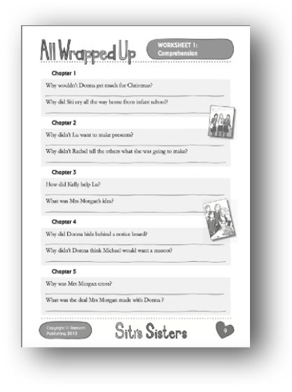 Support: There are two questions for each chapter of the story. The questions appear in chapter order. Ask the students to re-read the chapter before answering the questions. If appropriate, discuss the questions with the students before asking them to provide a written answer. Note the implication in the story that Siti’s family do not celebrate Christmas.