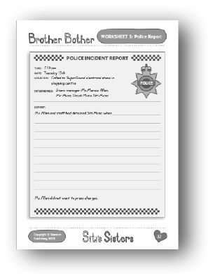Support: Review the story from the start of Chapter Four. Discuss what each character might say to the policeman. Make notes for each person. Review these notes as part of a group activity. Decide what the policeman would see as the most important aspect of each person’s account. Decide whose views the policeman would be most likely to record first. Write these facts using a formal format. Discuss the sort of language a policeman might use in writing a formal report. List appropriate words and phrases on the board. What does it mean when the policeman writes ‘Ms Allen did not want to press charges’? Do you think this was the right way to deal with the situation?