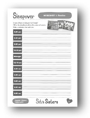 Support: Not every event in the story is given a specific time, though they can be worked out from the context. If necessary, read through the story and identify the points where a specific time is given e.g. at the start of the story, Lu asks her mum what time her friends may arrive. Fill these specific times in at the correct places on the worksheet. List the rest of the events of the story in order, then use clues from the story to fit in the events on the timeline into appropriate places. Ask the students for at least one complete sentence for each entry.
